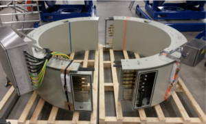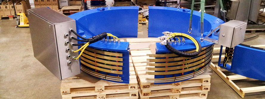 分體式過(guò)孔滑環(huán)可以有幾米的直徑。滑環(huán)通常由2-4個(gè)部分組成,它們?cè)诂F(xiàn)場(chǎng)連接在一起??讖捷^大,應(yīng)用于散裝物料處理設(shè)備。
