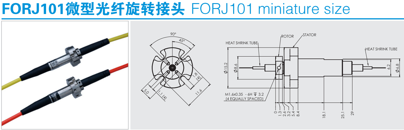 FORJ101光纖旋轉(zhuǎn)接頭用于單?;蚨嗄O到y(tǒng)的光電旋轉(zhuǎn)連接;完全的雙向旋轉(zhuǎn);與現(xiàn)有的電氣滑環(huán)設(shè)計(jì)相融合;全封閉結(jié)構(gòu);能為客戶量身定制所需要的光纖滑環(huán)