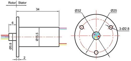 ■ 因我們的帽型滑環(huán)轉(zhuǎn)動扭矩很小,因此可將內(nèi)圈部分導(dǎo)線保護好后直接用于轉(zhuǎn)動或固定