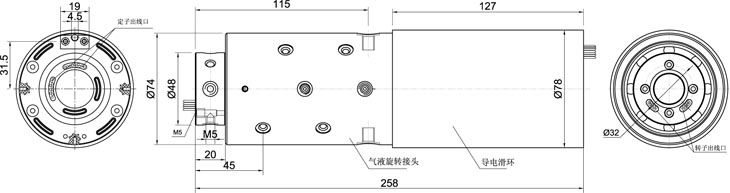 全盛氣(液)電組合電氣滑環(huán)電信號與氣路、液路混走; 結構緊湊